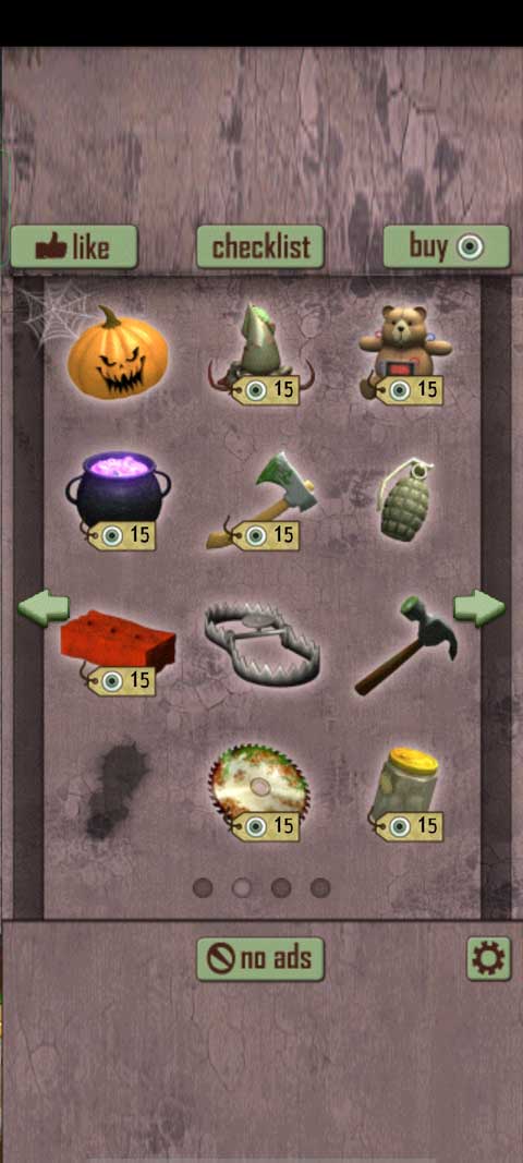 3、玩家还可以在商店中查看更多的投掷物,像老鼠夹、炸弹、圣诞南瓜以及女巫药水等,玩家可以用眼球购买这些道具。