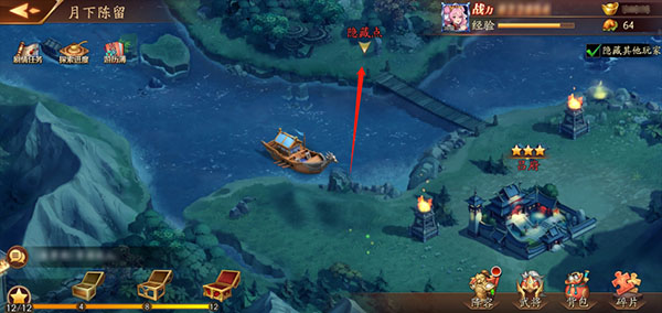 隐藏地点坐落在地图右上角,需穿过吕府的小桥,在对岸的小岛上可发现线索。