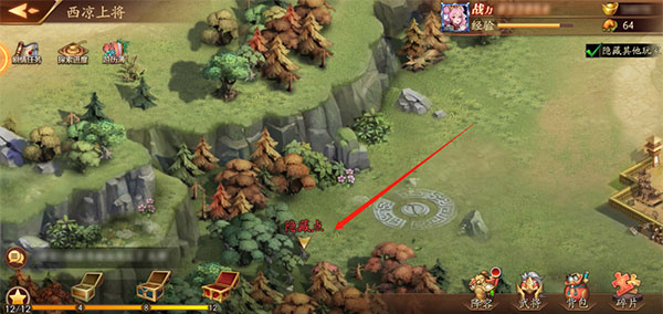 本关卡的隐藏点在地图最右上角的树丛旁,探索后可获取丰富物资,战胜【战熊】后还能点亮游历图鉴。