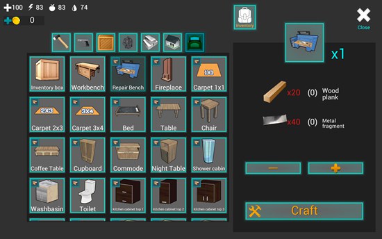 12、不过现在我们首先要做的还是一个火堆,制作一个火堆需要7个木头,点击火堆,然后点击右下角的“Craft”,即可制作出来。