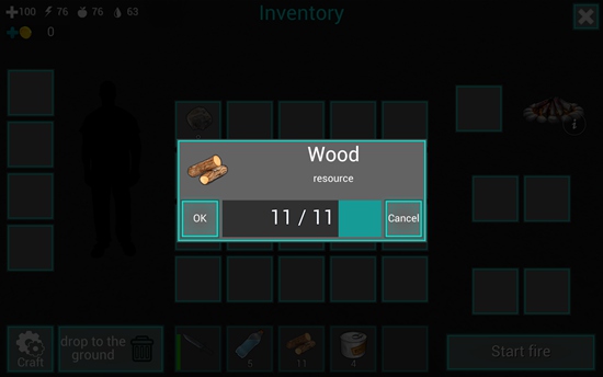17、至于要放多少木头,就看大家了,左右滑动滑条可以控制放入火堆的数量,小编试了一下,大概10根木头,可以燃烧10个小时。