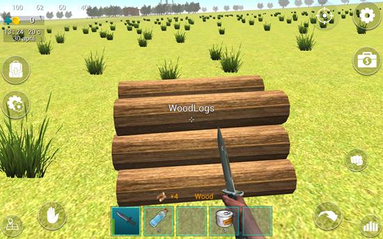 23、小编还遇到了木材堆,用匕首攻击,一次可以获得4个木材,很快就能获得99个。