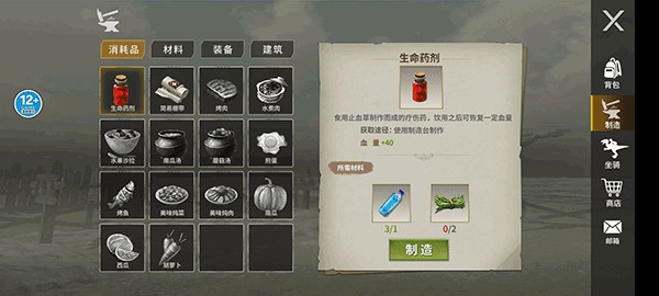 2、我们也能收集材料,打造出需要的道具,或者是食物,好让我们不在荒野中饿死。
