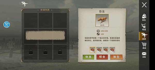 3、游戏还能收集恐龙当我们的坐骑,但是我们也需要每天对它进行喂养,否则可能它可要饿跑了。