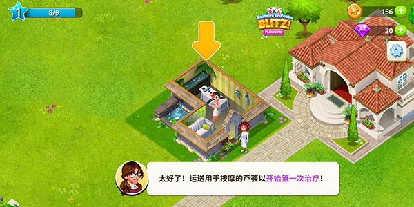 1、进入游戏之后,我们先来免费建造一个按摩工作室。