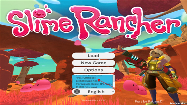 1、下载安装好史莱姆牧场手机版,点击下方语言选项;
