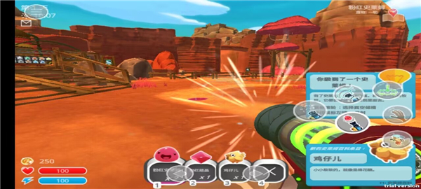 4、在地图中找到史莱姆并点击右边的收集键吸到武器中;