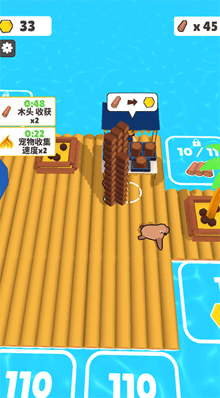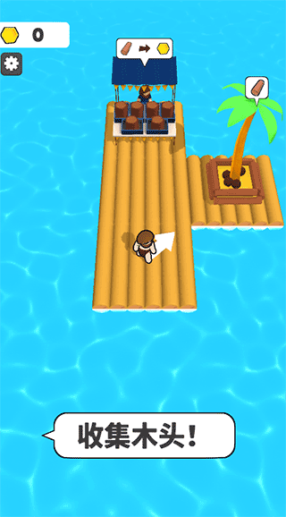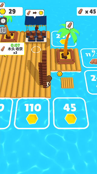2、然后收集各种漂流材料。进一步建设自己的离岸住宅。