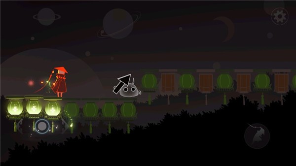 5、点击右侧【人形图标】进行跳跃,点亮所有灯笼到达终点完成关卡。