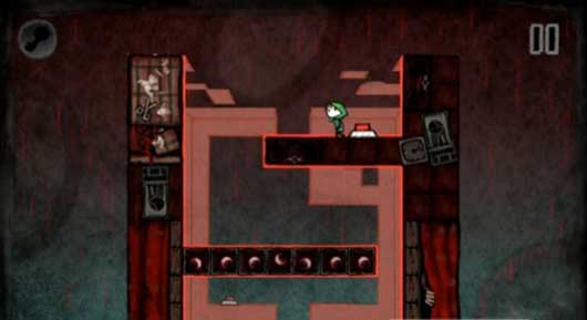 6、第三个场景踩下按钮以后从左边跳下来,落到左上的平台上,然后沿路前进进入门内解开顺利过关。