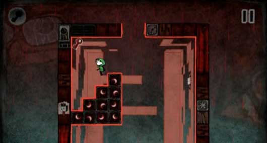 4、然后从中间跳下去,第一次踩按钮。再跳一次到向左拐去吃钥匙。