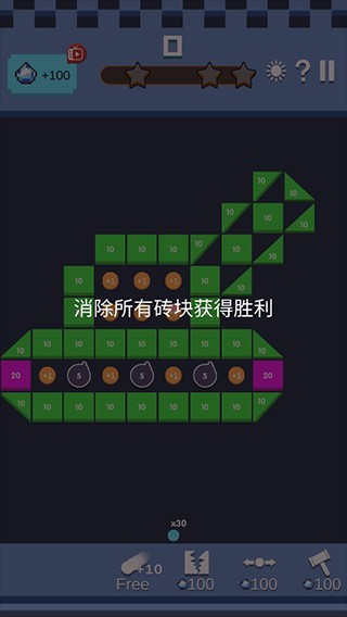 2、巧妙控制小球的方向和力度,在砖块之间进行弹跳,并且需要保证击中尽可能多的目标。