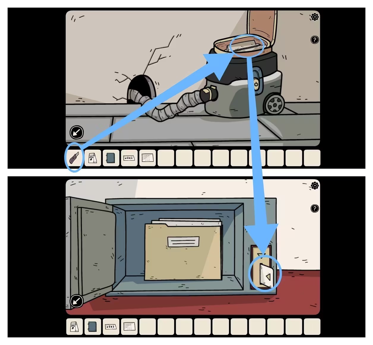 11、回到暗室将软管装在吸尘器上打开开关,再用美工刀割开袋子拿到「磁卡」,接着回二楼右侧房间用其打开保险柜,点击文件夹进入剧情