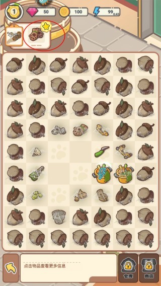 1、进入乐缤纷庄园合成界面,将相同的元素进行合成;