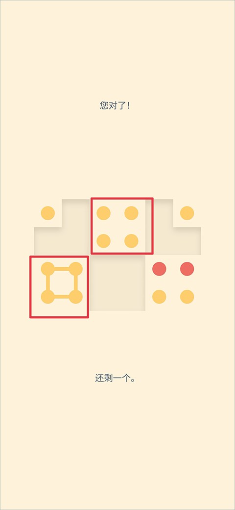 4、除了常规消除思路外,把相同颜色的点点连接成一个大的闭合图形(一般都是四个点连一个小正方形),就可以清除界面上所有通颜色的点点
