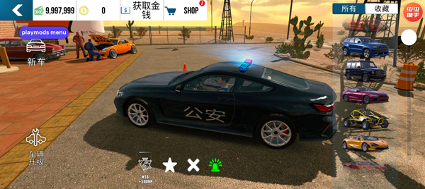 4、如果确认将这辆车改成警车,就可以点击我的,这辆车将装上警灯,驾驶它就可以对超速玩家进行罚款。