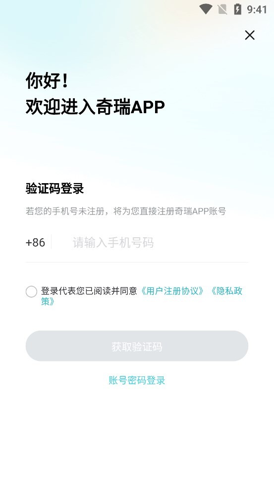 1、打开奇瑞汽车,登录账户。如果没有注册过,登录时会自动进行注册。