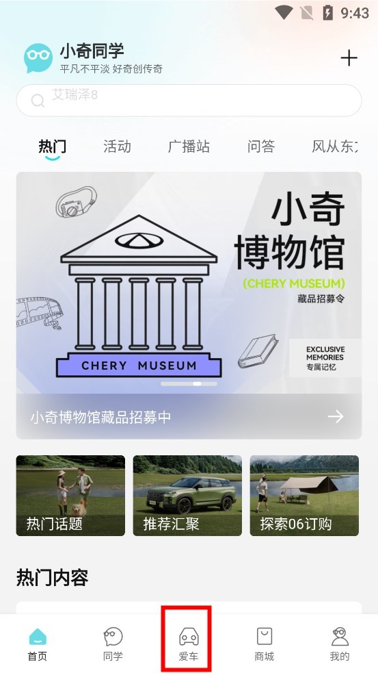 2、登录后,进入首页,点击下方的“爱车”模块。