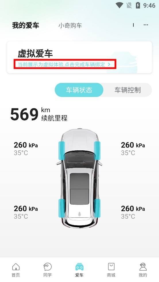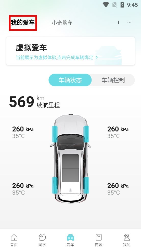 3、在“爱车”页面,按左上角的“我的爱车”选项。