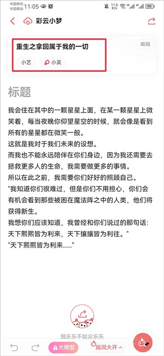 下载彩云小梦ai写作下载安装安卓版是经典AI智能写作软件,保留了旧版核心功能,带来流畅的创作体验。在彩云小梦ai写作下载只需提供一个开头,AI即可智能续写,并支持反复生成优化,帮助用户突破写作瓶颈,随心创作更高效。