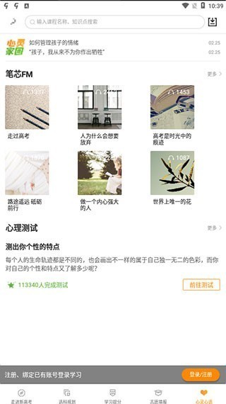 5、进入“心灵心语”专区,进行心理测试,缓解学习压力,提高备考状态。