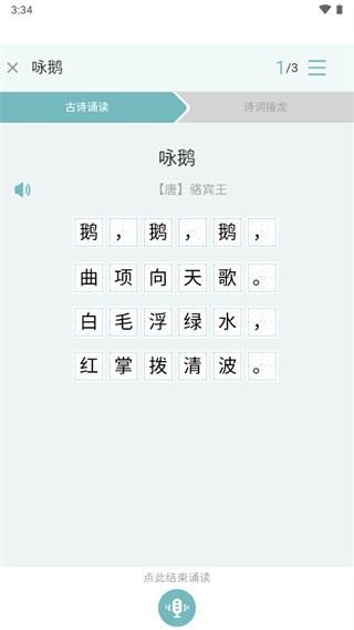 4、点击下方的中心喇叭按钮,即可开始朗诵练习。