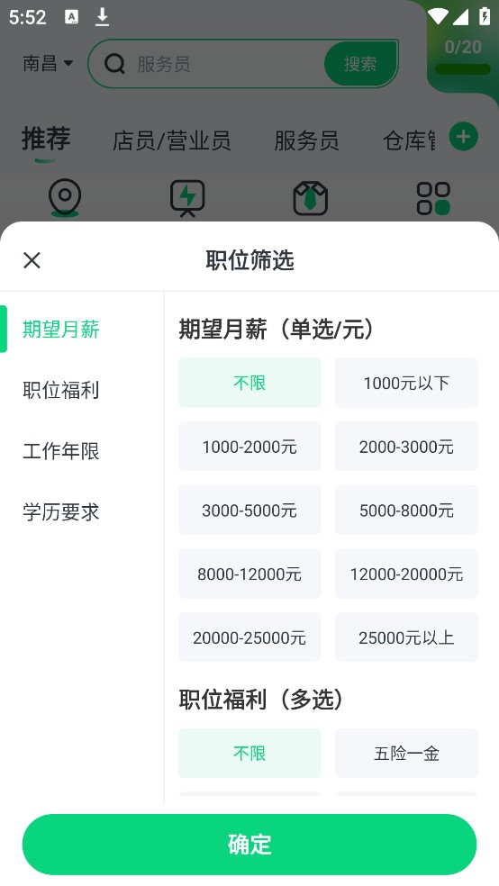 3、在筛选页面,填写你的期望工资、工作类型、行业等相关信息。