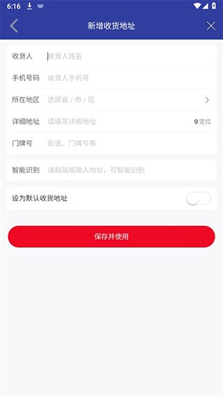 5、输入收货人、手机号码、所在地区等详细信息,点击保存并使用,即可成功添加收货地址。