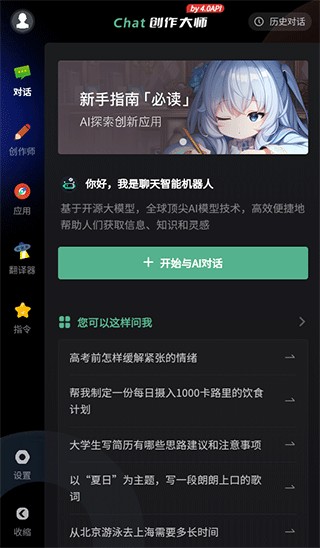 下载ai创作专家(智能助手)手机版下载安装最新版是多功能智能助手,集成了实时语音对话、文本润色、文案写作、逻辑推理、语言理解、知识问答、PPT大纲生成、代码编写与理解等多项功能。作为手机端的贴身管家,ai创作专家手机版下载能帮助您高效解决工作、学习和生活中的各种AI相关问题,实用性极强。