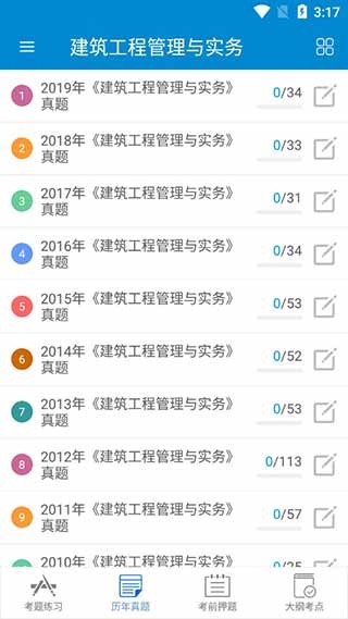 4、如果需要更多练习,选择历年真题。这里包含2007年到2019年的每一年的考试题和测试题。