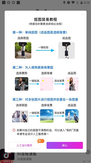2、AI一键智能抠图:通过AI技术,轻松实现精准抠图。