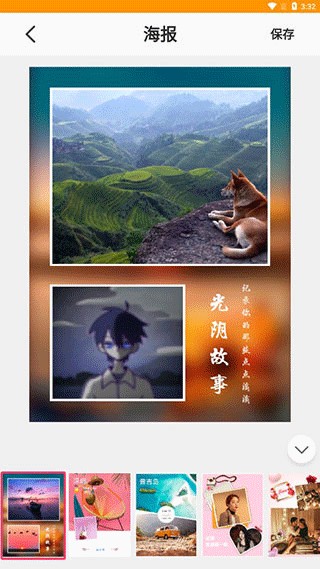 4、查看拼接后的成品,并可以选择其他模板进行调整,最后单击右上角的【保存】保存你的作品。
