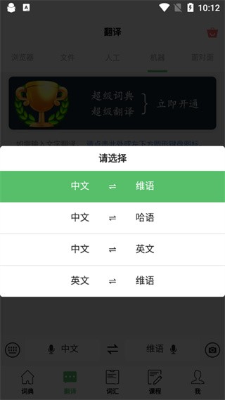 3、在翻译界面,你可以看到多种翻译模式可选,如人工翻译和机器翻译。