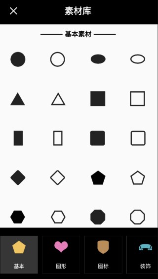3、进入编辑界面后,可以使用素材库添加图形、文字、图标等元素,增强设计效果。