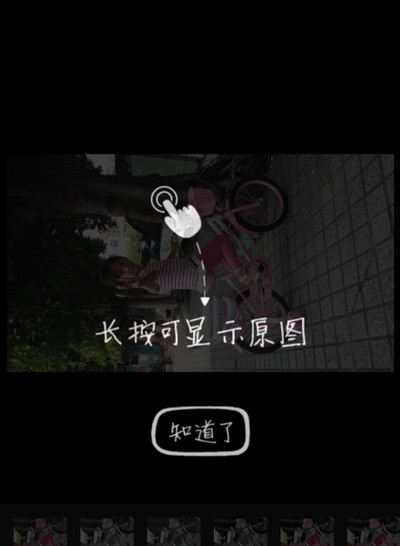 5、在滤镜预览过程中,长按照片可瞬间切换为原图,再松手即可恢复效果图,便于对比修改前后差异。