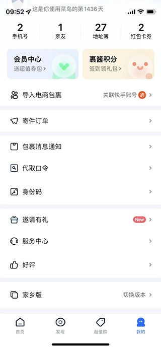 1、打开菜鸟裹裹,点击右下角【我的】进入个人中心。
