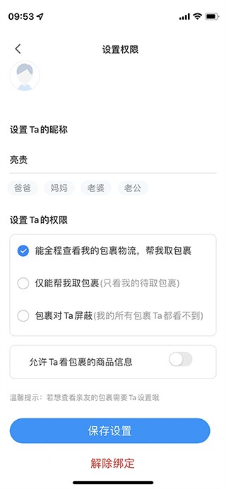 4、将权限设置为“包裹对Ta屏蔽”,最后按【保存设置】即可。