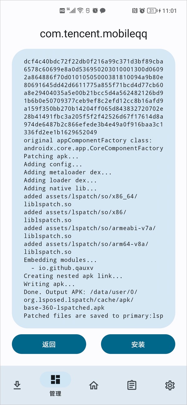 本地模式:无需内置模块即可修补 App,但需要lspatch管理器在后台运行。