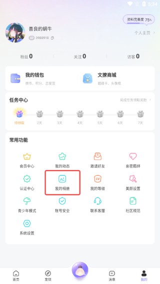 2、在“我的”页面,选“我的相册”。