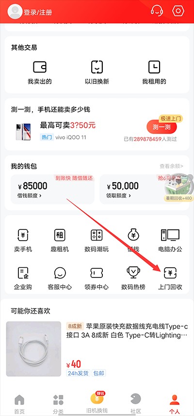 2、进入后,单击“上门回收”选项。