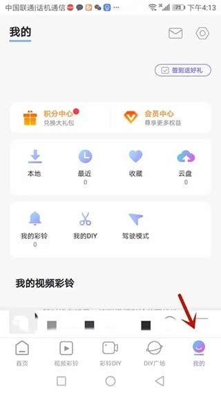 1、打开爱音乐,点击“+”或进入“彩铃DIY”入口。