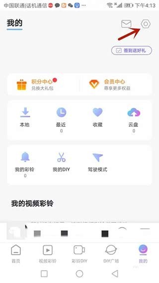 2、在“我的”页面,点击设置按钮进入设置选项。