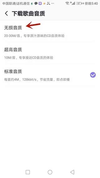 4、选择并启用“无损音质”选项,即可开始下载无损音质的歌曲。