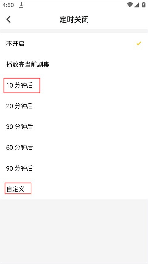 3、选择预设时间或自定义关闭时间,设置完成后即可自动在设定时间停止播放。