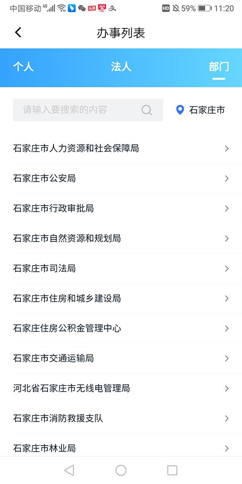 3、除了关键词搜索,还可以按部门分类,浏览各单位提供的办事项目,方便快捷。