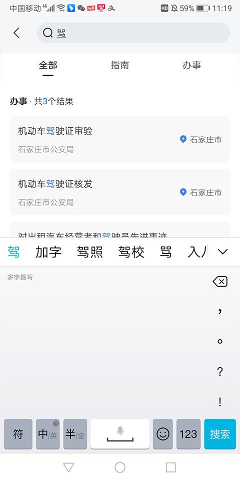 2、在搜索框中输入关键词,即可智能匹配相关办事事项,快速查找所需服务。