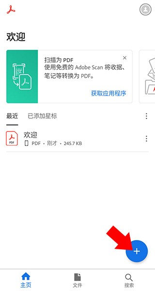 2、首页单击右下角“+”号,打开或创建PDF文档。