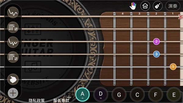 5、如果要练习和弦,选择对应和弦图,按照图示指法按弦,模拟弹奏。