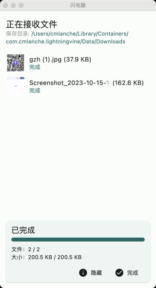 4、文件传输完成后,接收设备即可查看文件。