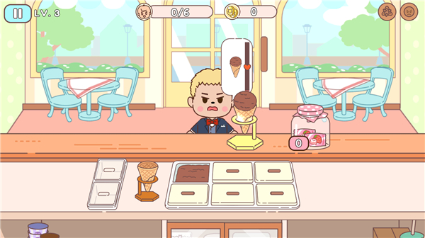 下载冰淇淋咖啡馆游戏免费下载安装将玩家带进一个模拟经营冰淇淋咖啡馆的游戏世界中,玩家将在这里扮演一名冰淇淋店的老板,玩家将在学习各种冰淇淋的制作,同时玩家还需要为每天光临店铺的各种客人提供服务,根据顾客的口味需求制作各种美味的冰淇淋。冰淇淋咖啡馆(Ice Cream Cafe)下载以闯关模式进行,为玩家提供了60个游戏关卡,游戏的难度将随着关卡的提升而增加,成功通过关卡将获得金币奖励,玩家能利用金币来升级自己的店铺及设备,更轻松地制作出个各种美味的冰淇淋。